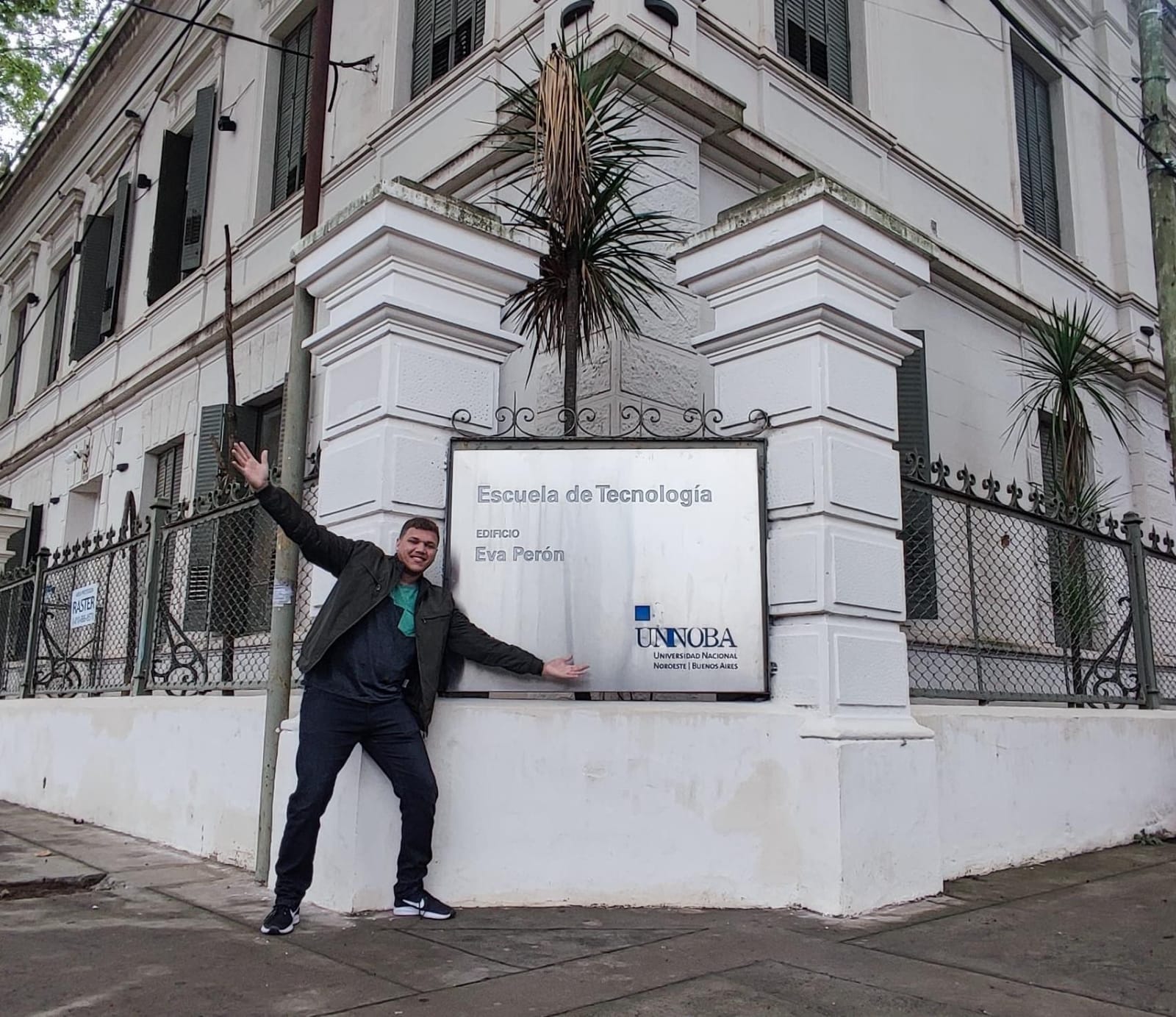 Paulo Madson em frente a Escola de Tecnologia da Universidad Nacional del Noroeste de la Provincia de Buenos Aires