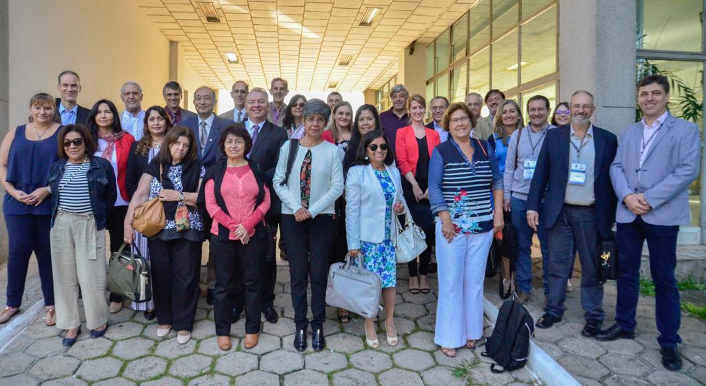 Na imagem, representantes das 36 universidades participantes da AUGM que se fizeram presentes na primeira Reunião Anual de Delegados Assessores, sediada em Santa Maria.