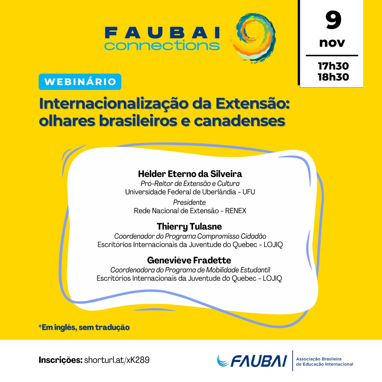 A Associação Brasileira de Educação Internacional (FAUBAI) realizará webinário sobre Internacionalização da Extensão: olhares brasileiros e canadenses da Série FAUBAI Connections.