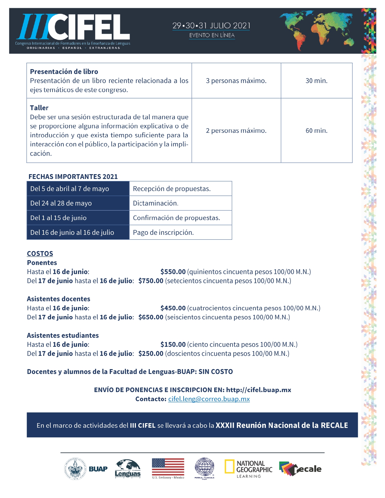 Interessados em realizar a submissão de trabalhos e inscrições, click aqui. Para mais informações entre em contato pelo email: cifel.leng@correo.buap.mx