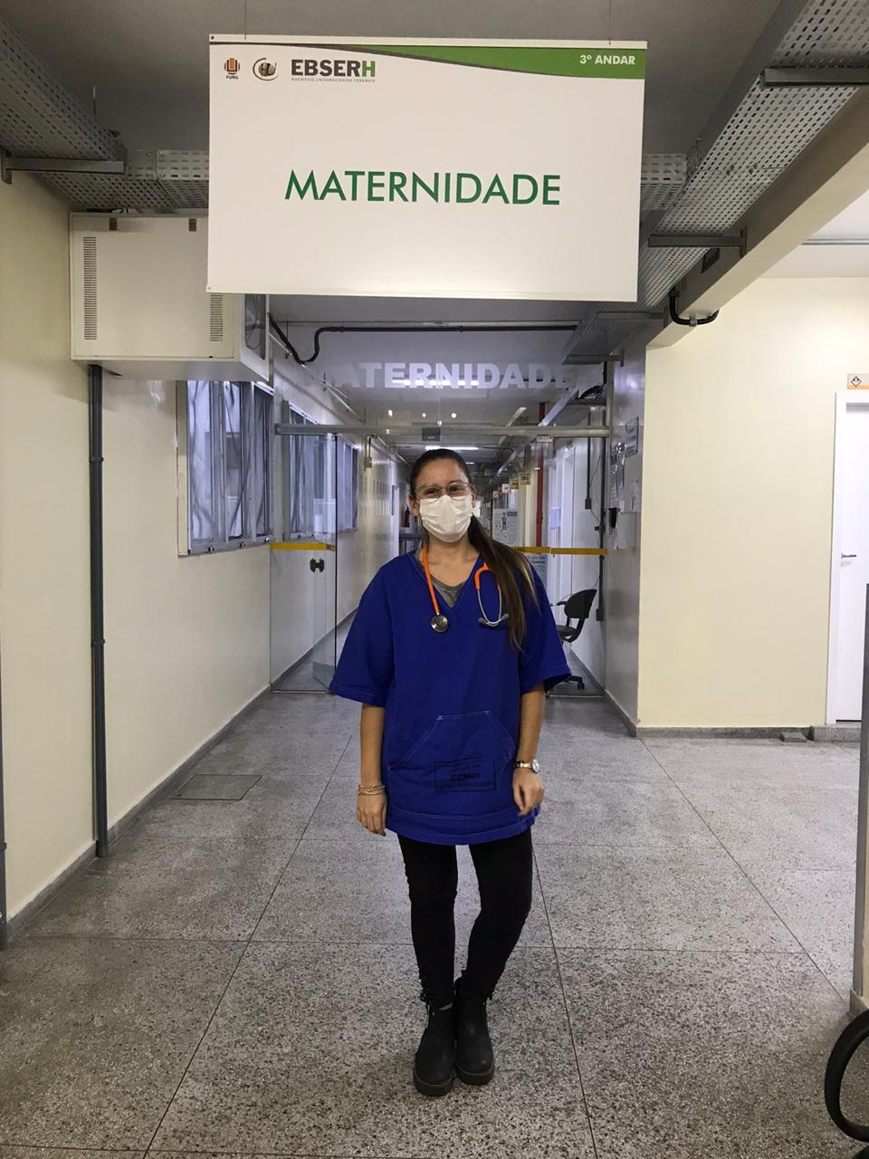 Carola Turquetti trabalhando em seu estágio no Hospital Universitário