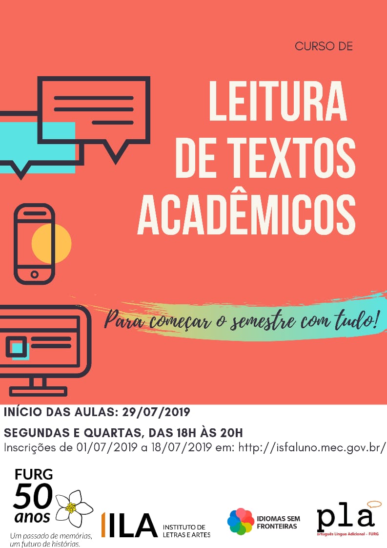 O programa Idiomas sem Fronteiras (IsF) abre inscrições para o curso presencial de Português para Estrangeiros: Leitura de Textos Acadêmicos, o qual é direcionado a indivíduos em mobilidade internacional. O IsF tem como principal objetivo proporcionar oportunidades de acesso à capacitação linguística em outros idiomas, ampliando a internacionalização das universidades brasileiras. As inscrições vão de 1° de julho até 18 de julho. O resultado sai no dia 23 de julho.